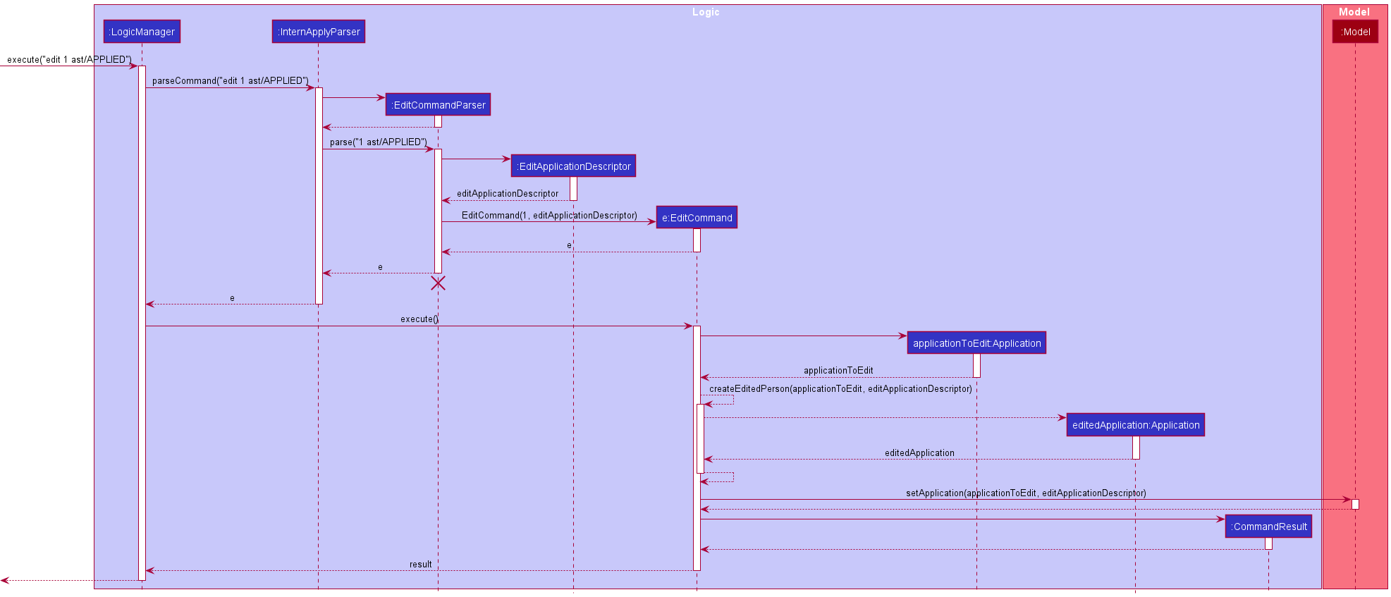 Logicis called upon to execute a command, it uses theInternApplyParserclass to parse the user command. - This results in a