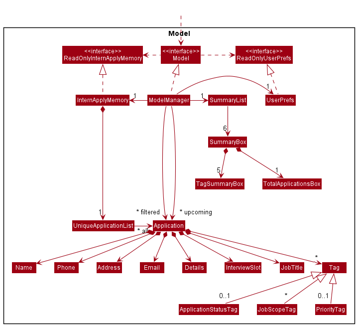 Applicationobjects (e.g., applications with upcomingInterviewSlot) as a separate upcoming list which is exposed to outsiders as an unmodifiableObservableList<Application>that can be ‘observed’. - stores a